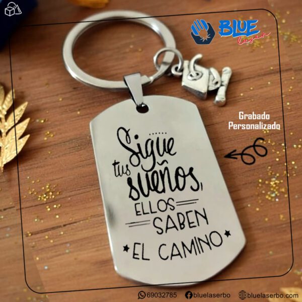 Llavero Placa Plateada con Dijes Tematicos (Varias Opciones)